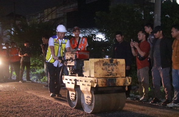 Setiba dari Jakarta usai pelantikan, pada Kamis malam (20/02/2025) Markarius Anwar bersama Kepala Dinas Pekerjaan Umum dan Penataan Ruang (PUPR) Kota Pekanbaru, Edward Riansyah langsung meninjau pengerjaan penambalan jalan berlubang di Jalan Rambutan.